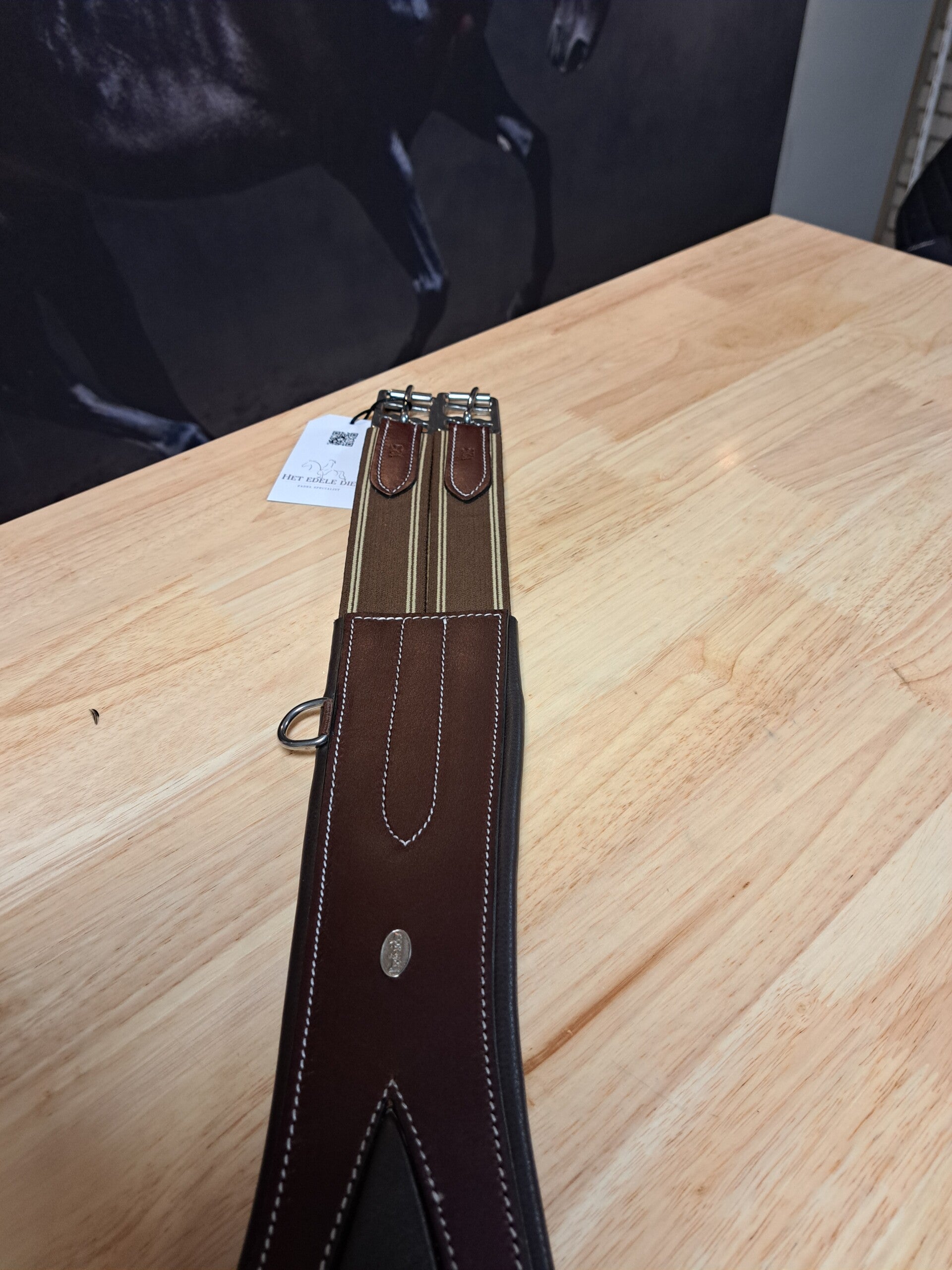 Springsingel van het merk Profi-Rider. De singel is uitgevoerd in zacht leer en is anatomisch gevormd. Door de vorm, wat breder onder het borstbeen is er een gelijke drukverdeling dat het zadel goed op zijn plaats houdt. De singel is uitgevoerd met een zware klip om martingaal of dergelijke aan te bevestigen. Verder heeft de singel 2 kleine D-ringen hoger op de singel voor borsttuig of hulpteugels.