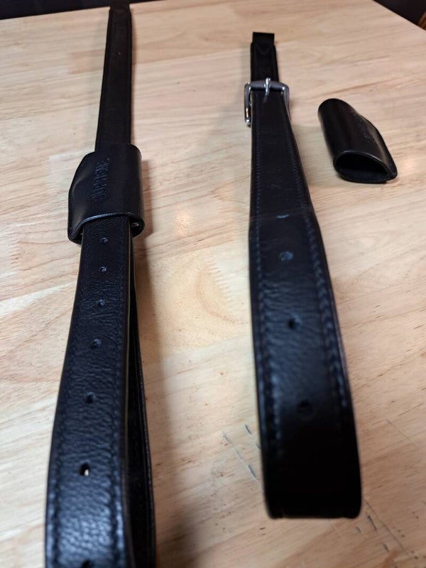 Hoogwaardige mono-leren stijgbeugelriemen, ontworpen voor duurzaamheid, comfort en minder volume onder het been.